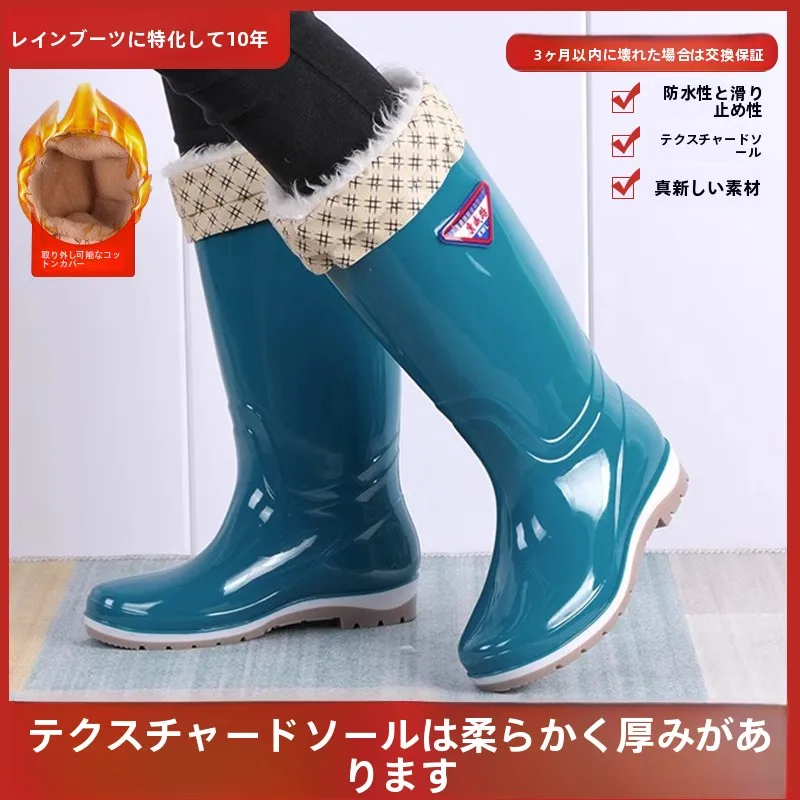 Women's Thiened Cotton Rain Boots High-Tube Anti-Slip Kitchen Water oes Warm Adult ort Tube Home Use Umbrella/Rain Gear