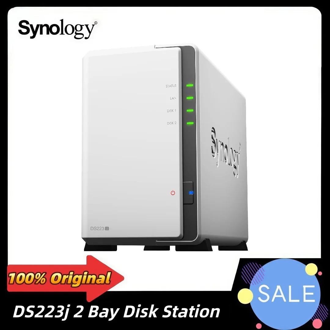 Synology DS223j 2-Bay DiskStation NAS Network Cloud Storage Server DiskStation SATA 6Gb/s RAID 1xGbE NAS Memory (Diskless)