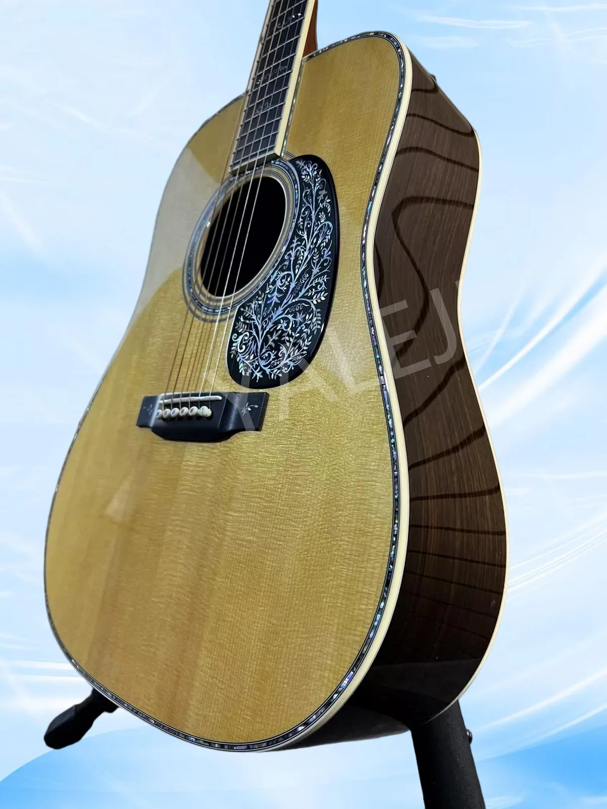 All Solid Wood Acoustic Guitar Sunburst Finish Abalone Inlay Handcrafted High Quality 6 String Folk Guitar Limited Edition