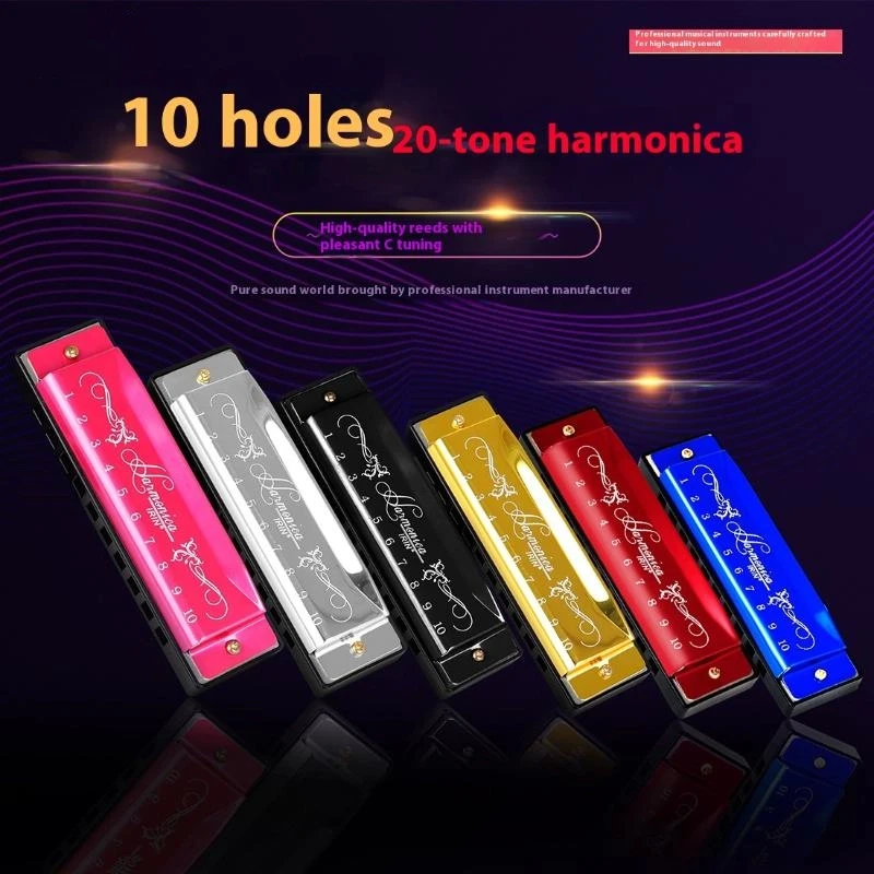 1PC 10-Hole 20-Tone Harmonica in Color C Professional Beginner Set with Case Ideal Christmas Gift for Music Lovers