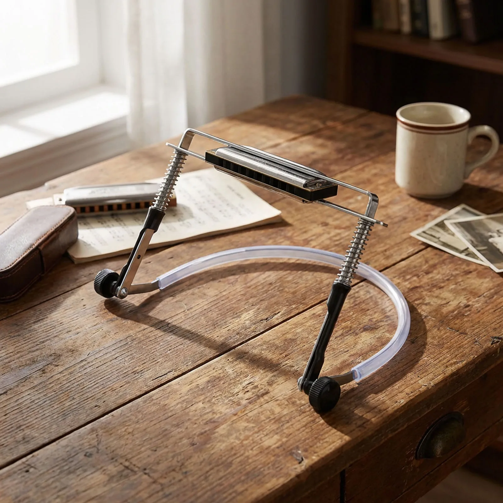 Professional Hands-Free Harmonica Holder Adjustable Neck Brace with Sturdy Steel Frame Fits 10/24 Hole Harps Up To 7.28" Length