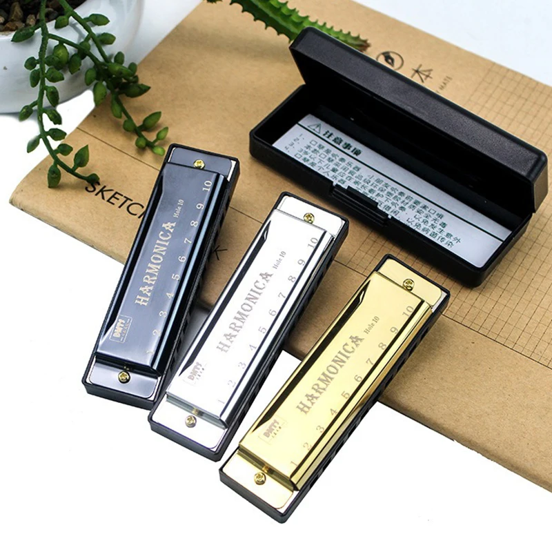 1PC Metal Harmonica Golden Silvery Black with Case Harmonica Musical Enlightenment Instruments Beginner Gifts for Boys Girls ZYF