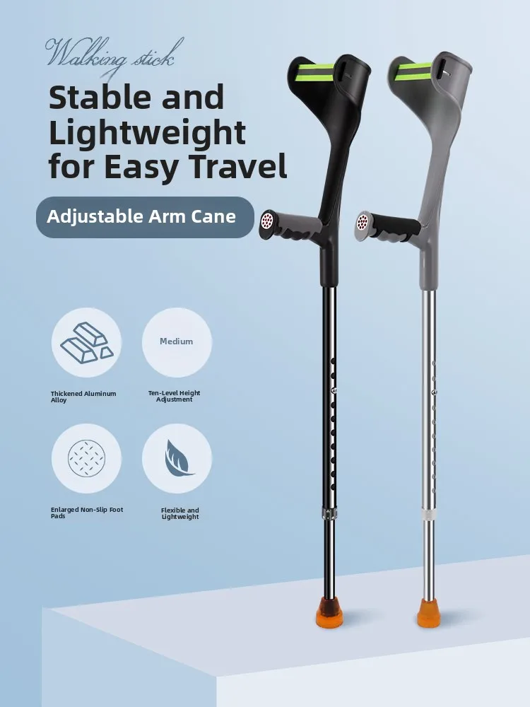 Aluminum Alloy Elbow Cane Arm Sle Anti-slip Young People's Bone Double Cane Underarm Cane Walker for Hiking And Cam