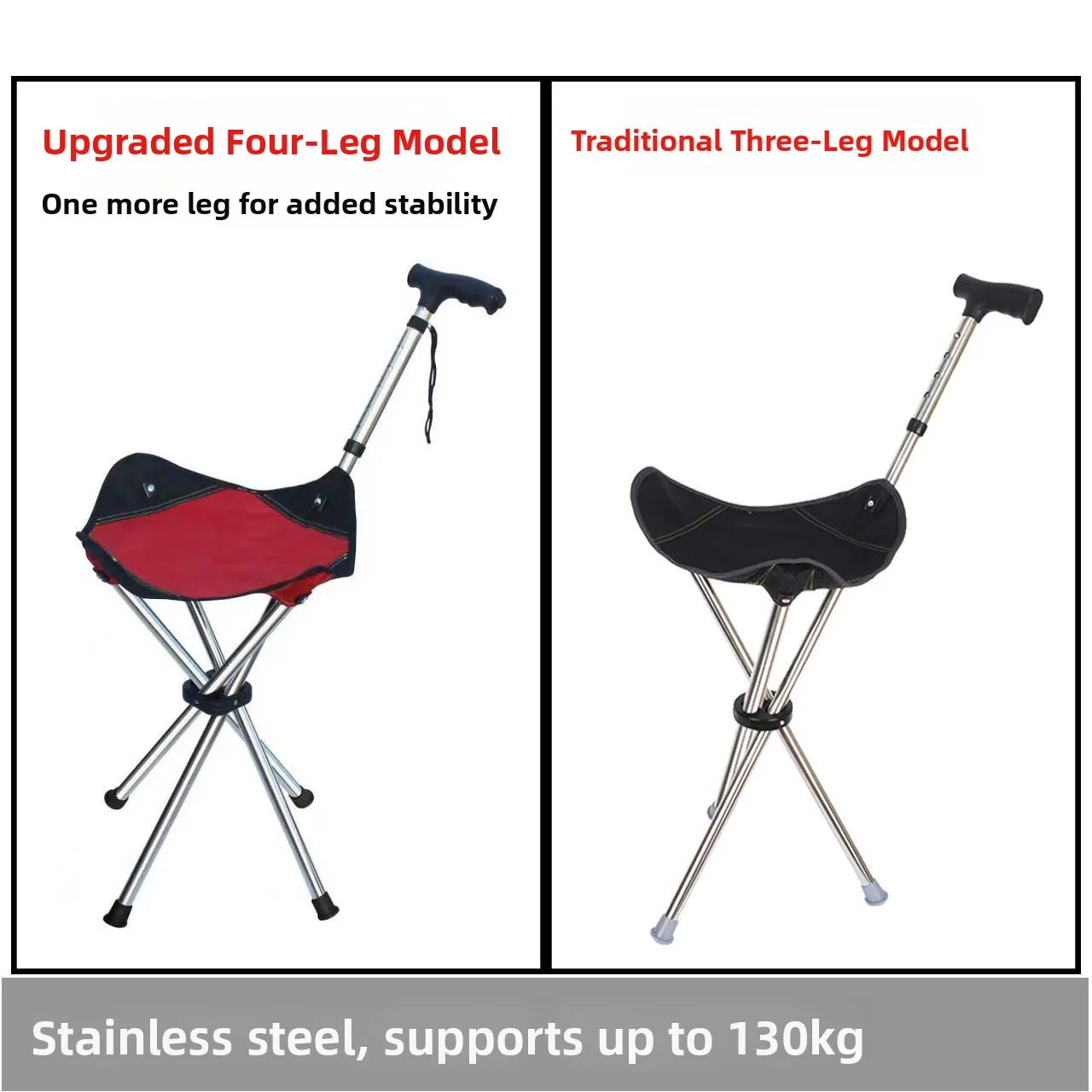 ly Multi-Functional Collapsible Portable Cane Bench Walking Aid Travel Railway Train Cact Chair Cane for Hiking And W...