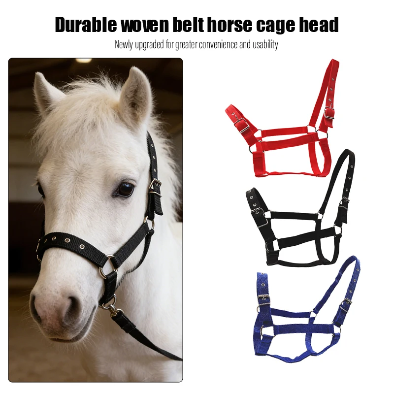 Adjustable Horse Halter, Equestrian Tack Halter with Lead Rope & Reins, Pony Size Adjustable Halter Rope, Horse Tack Accessories