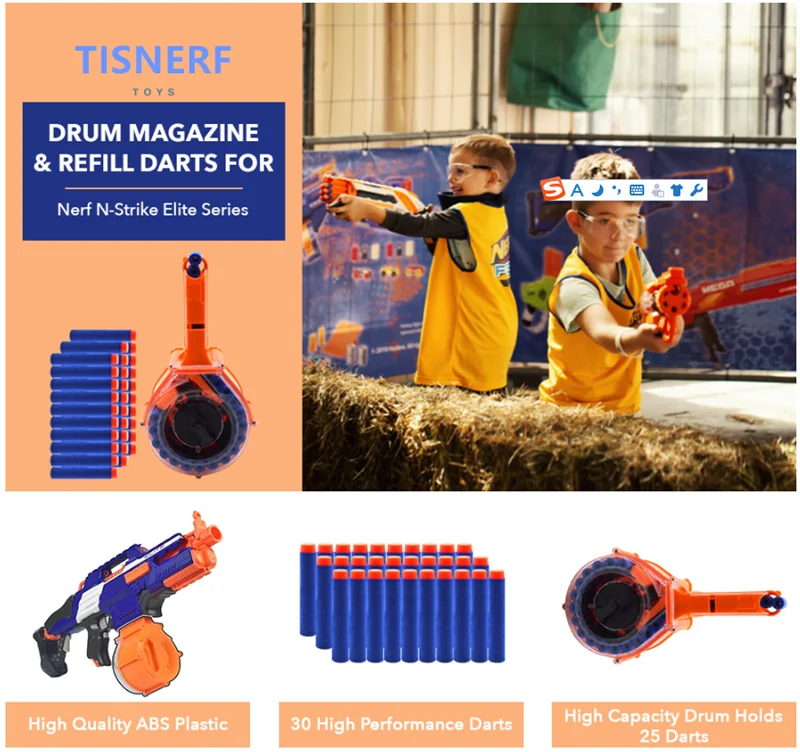 B25 30-Dart Drum Magazine for Nerf N-Strike Elite Series Soft Bullet Toy Gun Reload Ammo Accessories