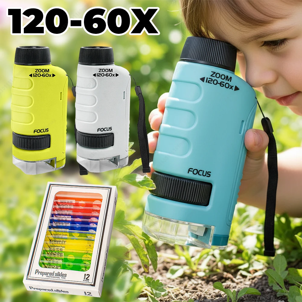 Educational Mini Handheld Microscope with LED Light Battery Powered Kid Science Experiment Pocket Microscope Kids Science Toy