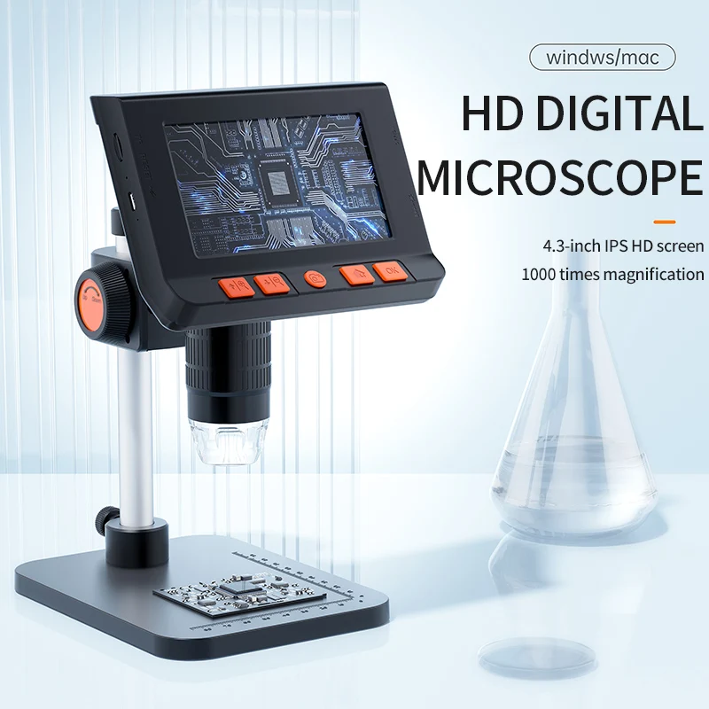 4.3‘’ Digital Microscope 1600X 2MP Coin Microscope Magnifier with 8leds Video Electronic Microscope for Soldering Phone Repair