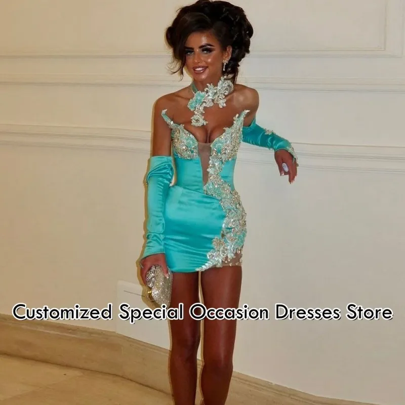 Luxury Short A-line Lace Crystal Cocktail Dress Sexy V-neck Off Shoulder Socialite Dress Formal Birthday Party Dress Customized