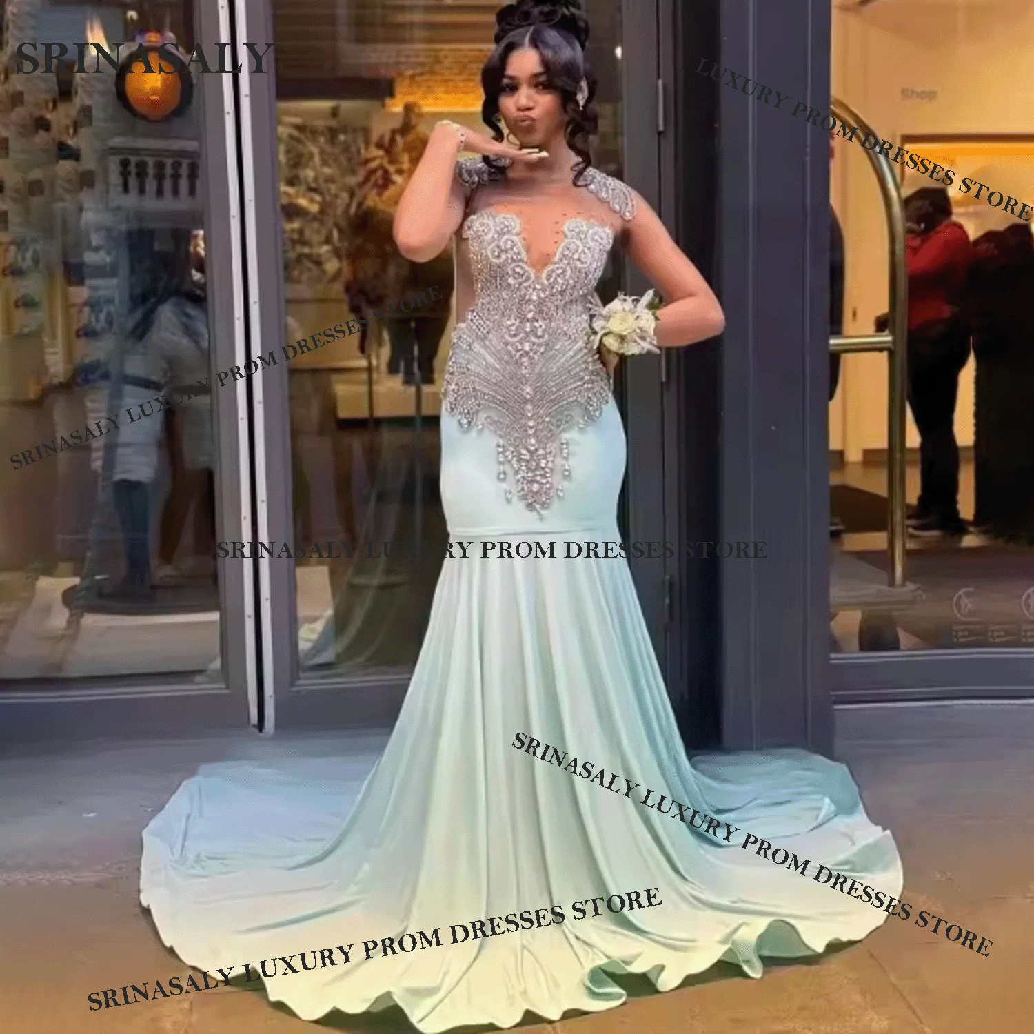 Customized Lace Long Mermaid Prom Dresses For Beading Crystal Exquisite Luxury Diamond Beading 2025 Open back Evening Gown Robe