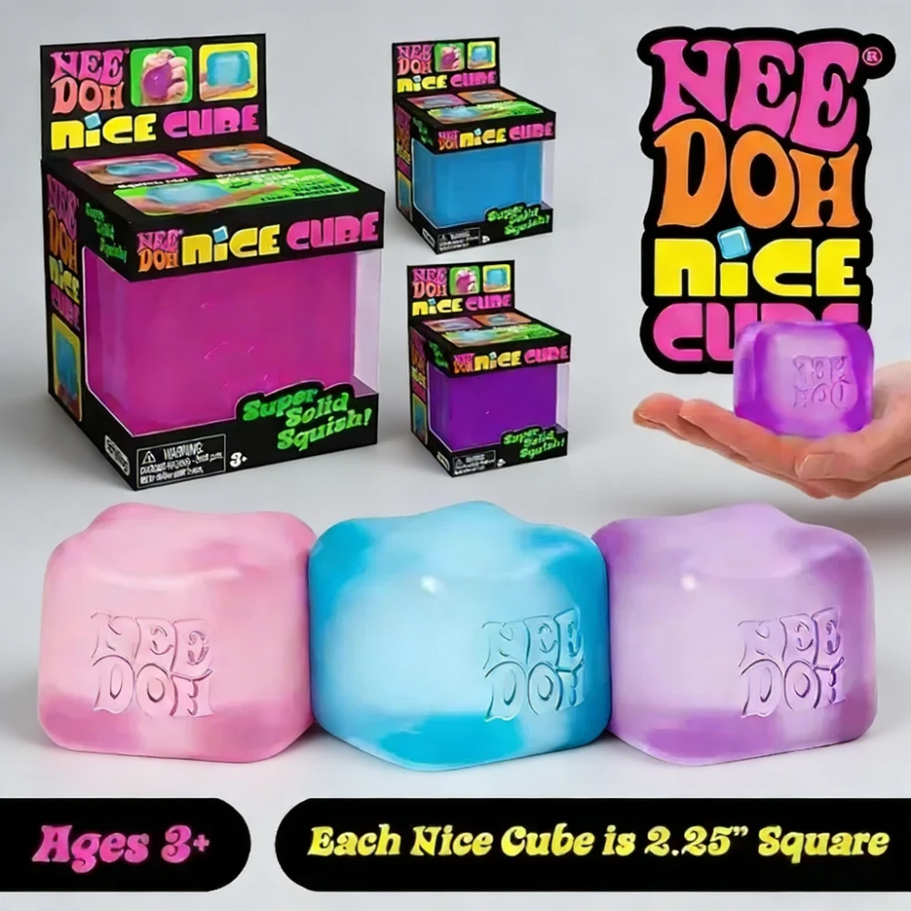 Schylling NeeDoh Nice Cube Sensory Squeeze Toy with Super Solid Squish Stress Relief Anxiety Sensory Tool - 2.25" Cube