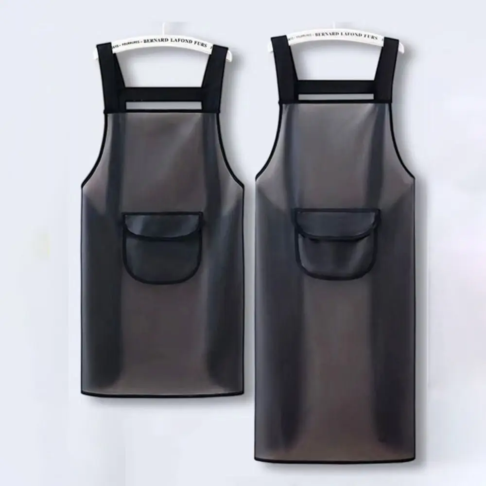 Household PVC Kitchen Apron Transparent Black Oil Resistant Work Apron Waterproof Dirt-Proof Oil Resistant Cleaning Aprons