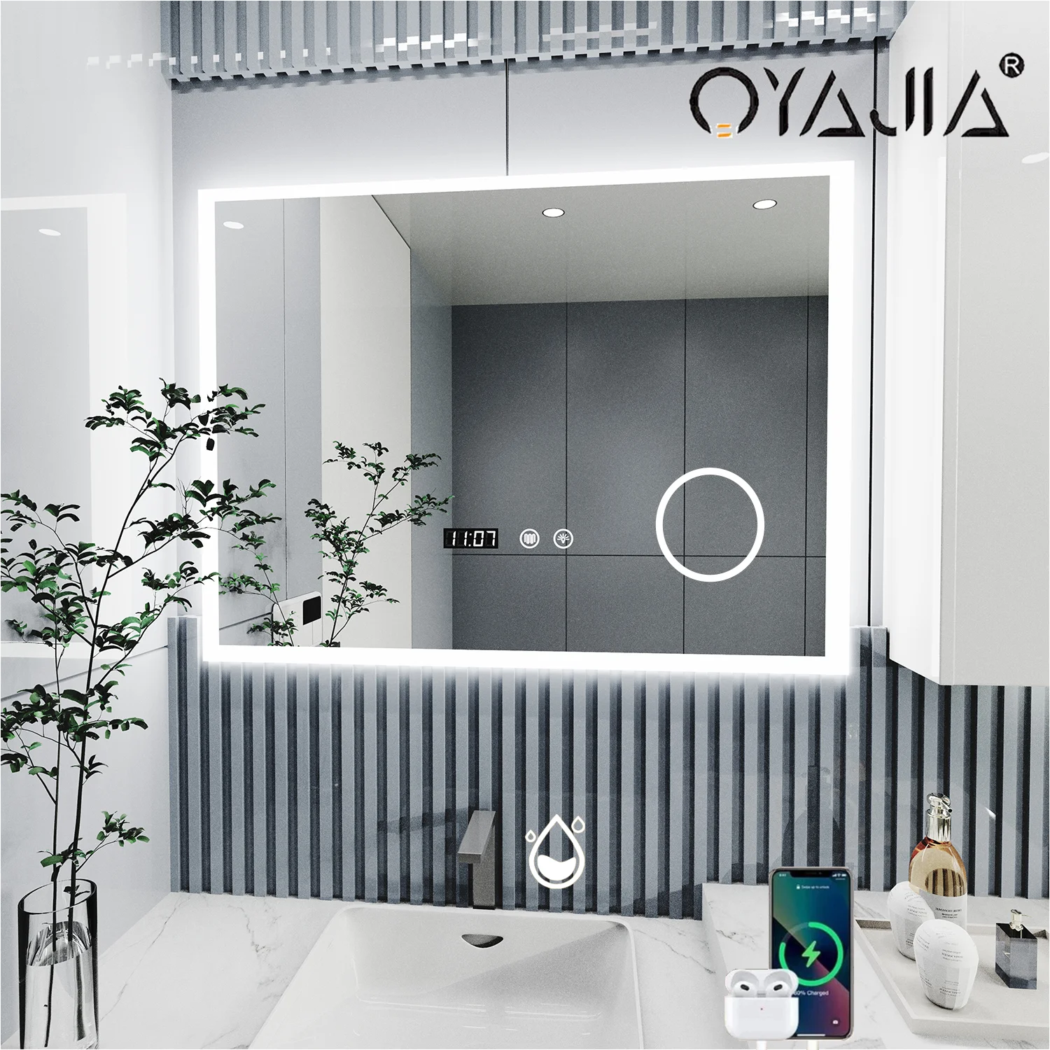 LED Bathroom mirror Makeup mirror with Three colors Dimmable Lighting and Anti-fog Touch switch Wallmirror USB Clock Fuse