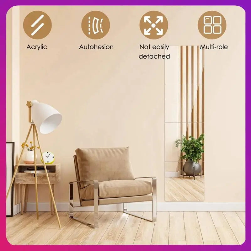 4 Pieces Self Adhesive Non-Glass Mirror Slim Flexible DIY Wall Decoration Mirror For Family Bedroom Closet Bathroom Durable , S