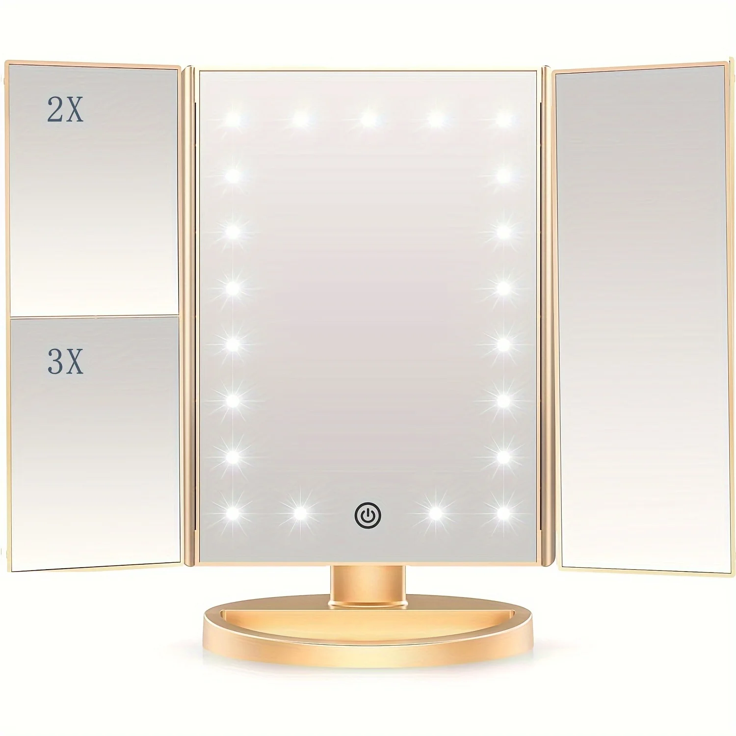LED Trifold Makeup Mirror with Lights, 10X Magnification, 180° Rotating, Portable Control - Women's Perfect Gift