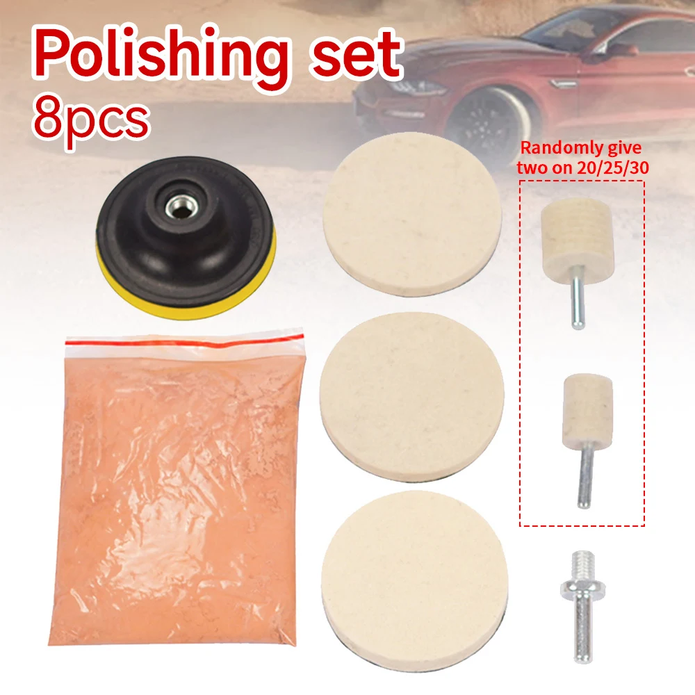 120g Polishing Powder Set & 80MM Viscid Disc With Felt Wheel&Wool Polishing Wheel Rod For Profession Polishing Automotive Glass