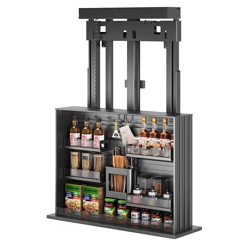 Kitchen cabinet drop-down seasoning basket vertical lift basket electric intelligent voice touch control cabinet