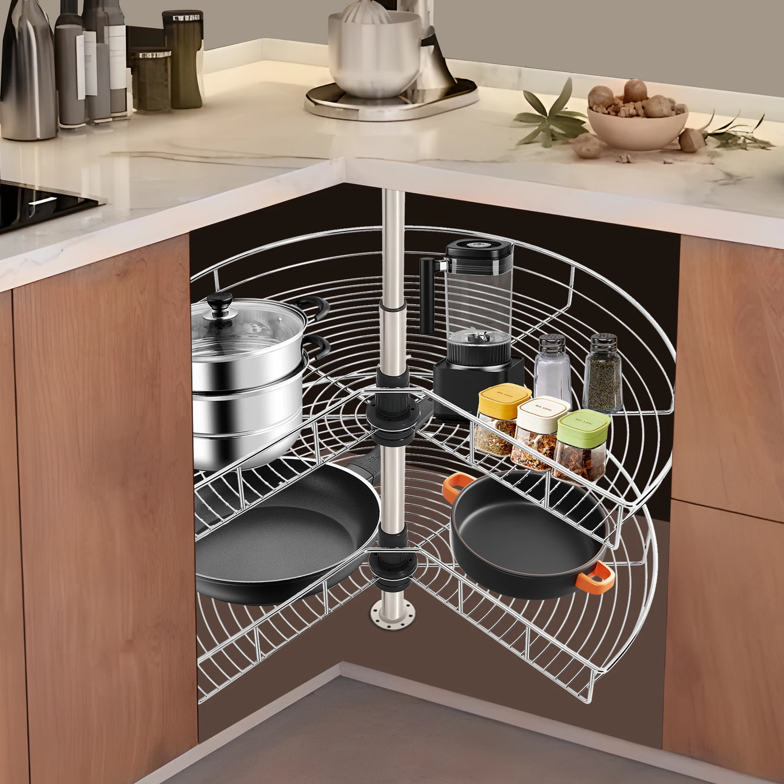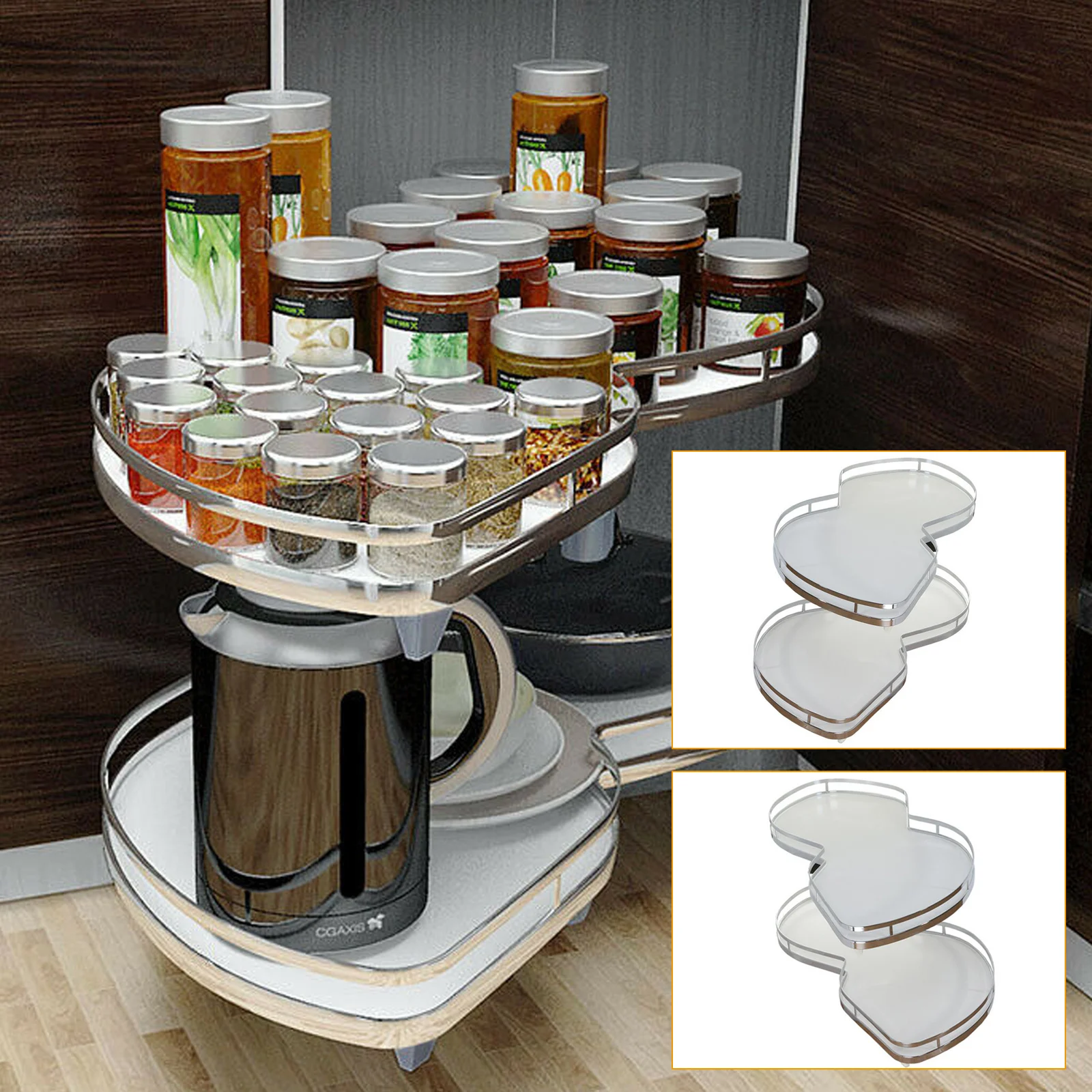 Corner Shelves for Cabinet Storage – Durable Iron with Chrome Plating, 2-Layer Swing Trays, High Load Capacity, Space-Saving