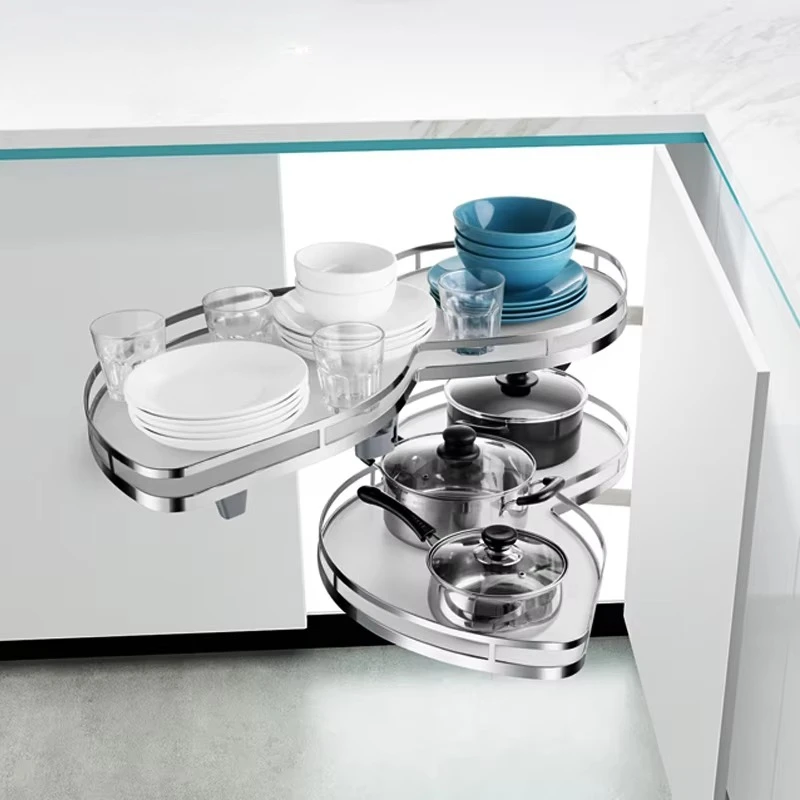 The Arc-shaped Pull-out Basket in The Corner of The Cabinet Can Be Rotated 180 Degrees for A Double-layer Storage Rack