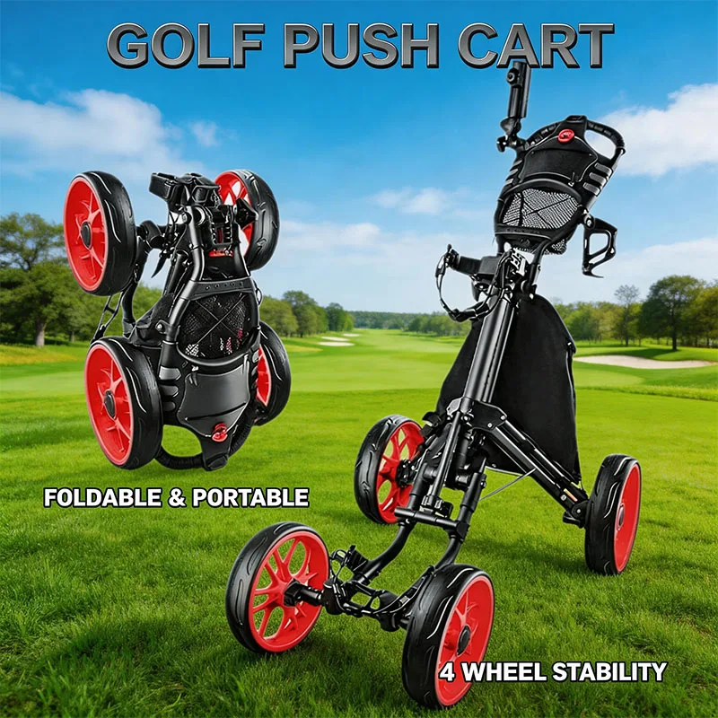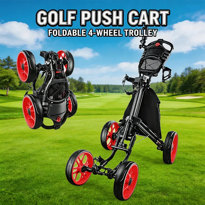 Golf Cart Foldable Golf Push Trolley Golf Accessories Golf Push Cart Compact Aluminum Alloy 4 Wheeled Golf Bag Carrier Cart