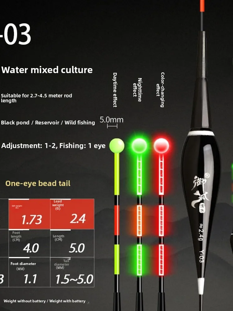 High Sensitivity Electronic Floating Indicator Night Fishing Bobber Color Changing Luminescent Carp Fishing Bobber Day Night ...