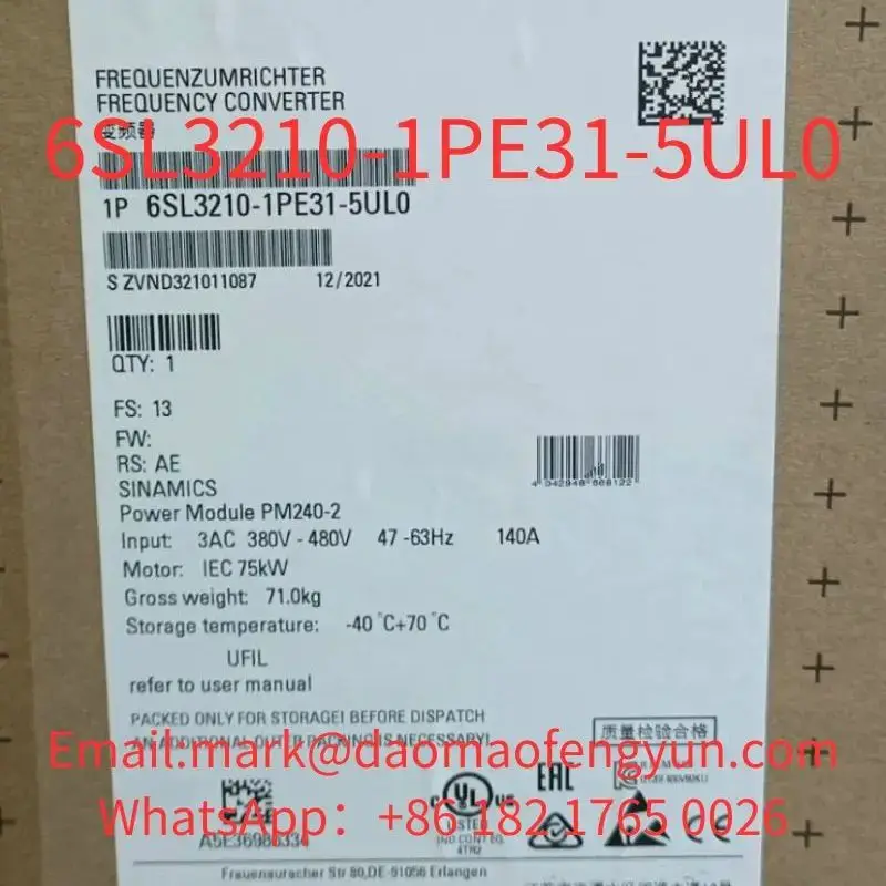 6SL3210-1PE31-5UL0 Brand New SINAMICS G120 POWER, MODULE PM240-2 WITHOUT FILTER WITH BUILT IN BRAKING CHOPPER