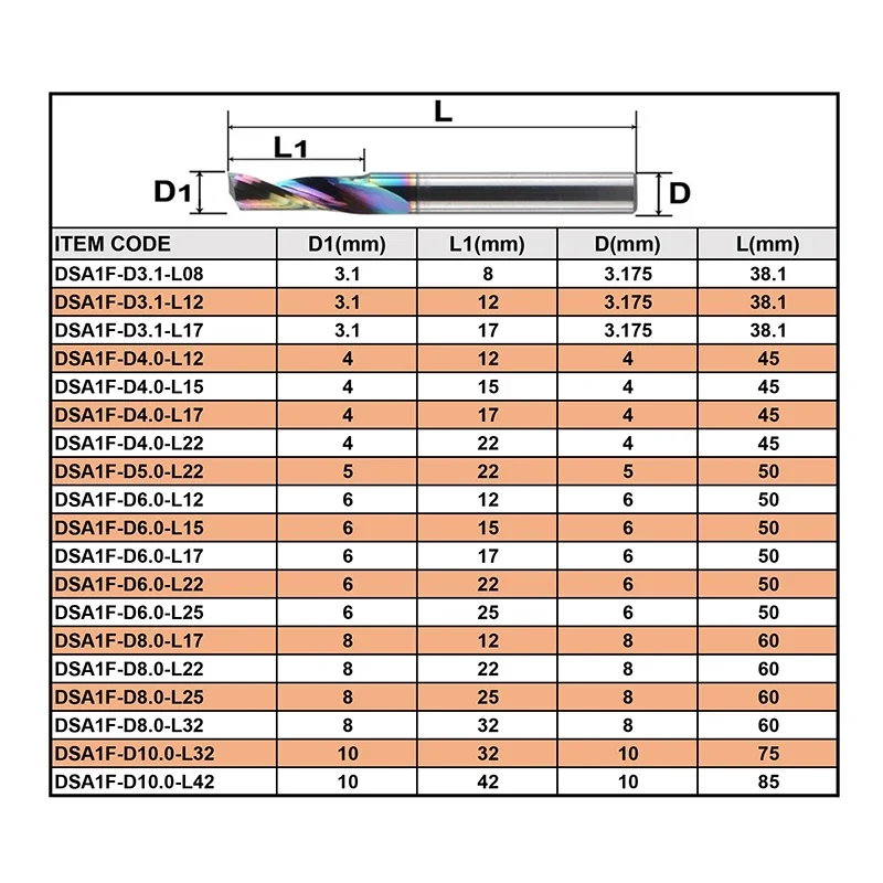 Dreanique 1pc DSA1F 1-10mm Single Flute Solid Solid Carbide Alloy End Mill DLC Coating Milling Cutter for Aluminium