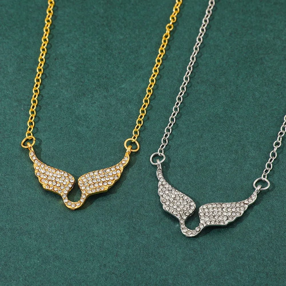 Angel Wings Rhinestone Pendant Necklace Women's Fashion Simple Sweet Charm Jewelry Perfect Gift for Birthday Valentine's Day