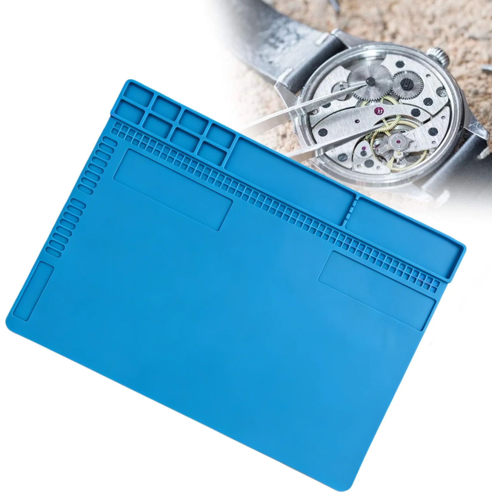 Blue Large Silicone Work Mat Non-Slip Rubber 13.8"x9.8" Heat Resistant Work Pad with Screw Slots & Parts Organizer