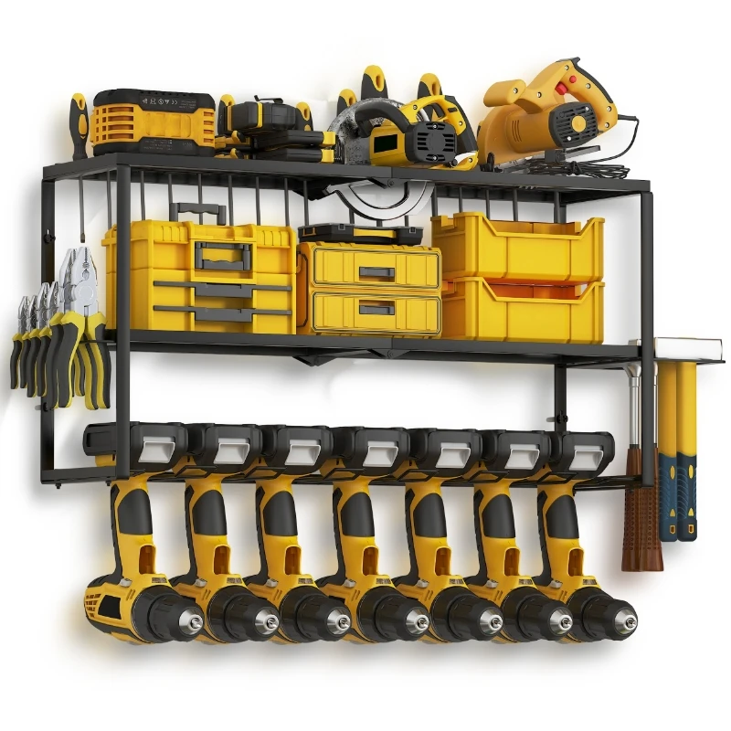 Power Tool Organizer Wall Mount - 300Lbs Load 3 Layers Storage Rack with 7 Drill Holders for Drills Cordless Tools