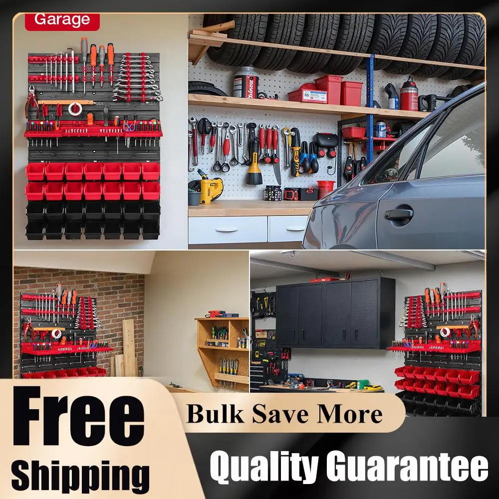 Tools Wall Storage Shelf Wall Mounted Tool Rack 28 Stacking Boxes Extra Strong Wall Plate Multi-Function for Workshop Garage