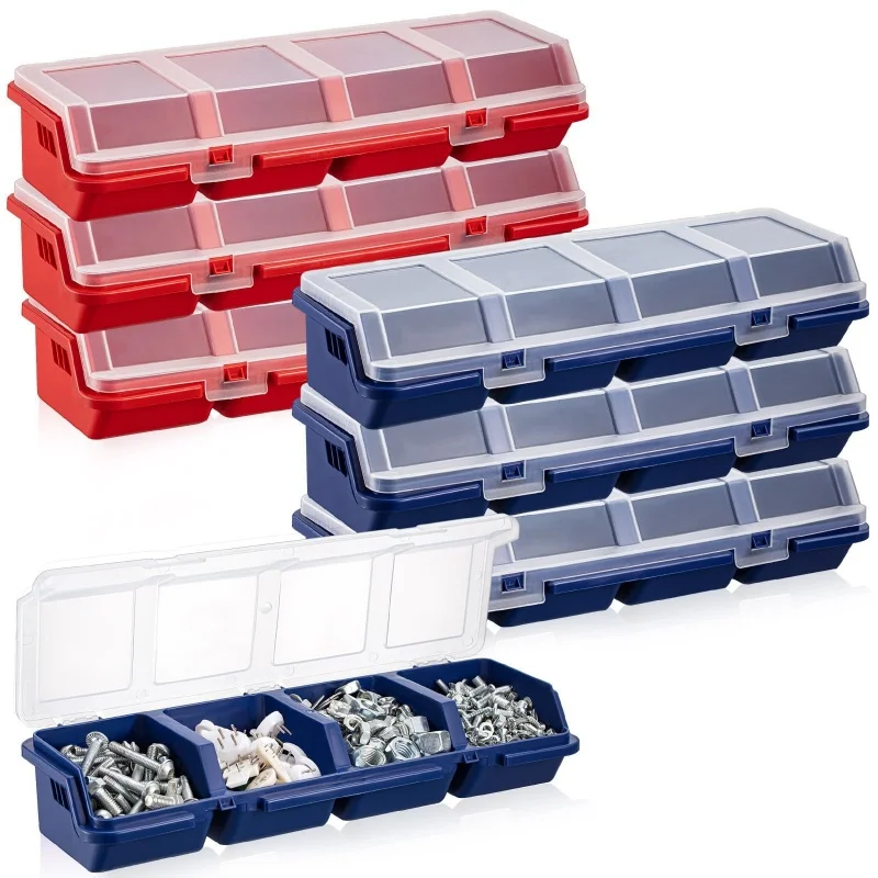 1Pc Parts Storage Box Plastic Screw Organizer Box with 4 Compartment Tool Part Container Bin with Lid Display Storage Case