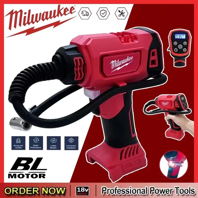 Milwaukee Cordless Electric Air Pump Handheld Air Compressor Rechargeable Air Pump 18V Battery Car Tire Automatic Inflator
