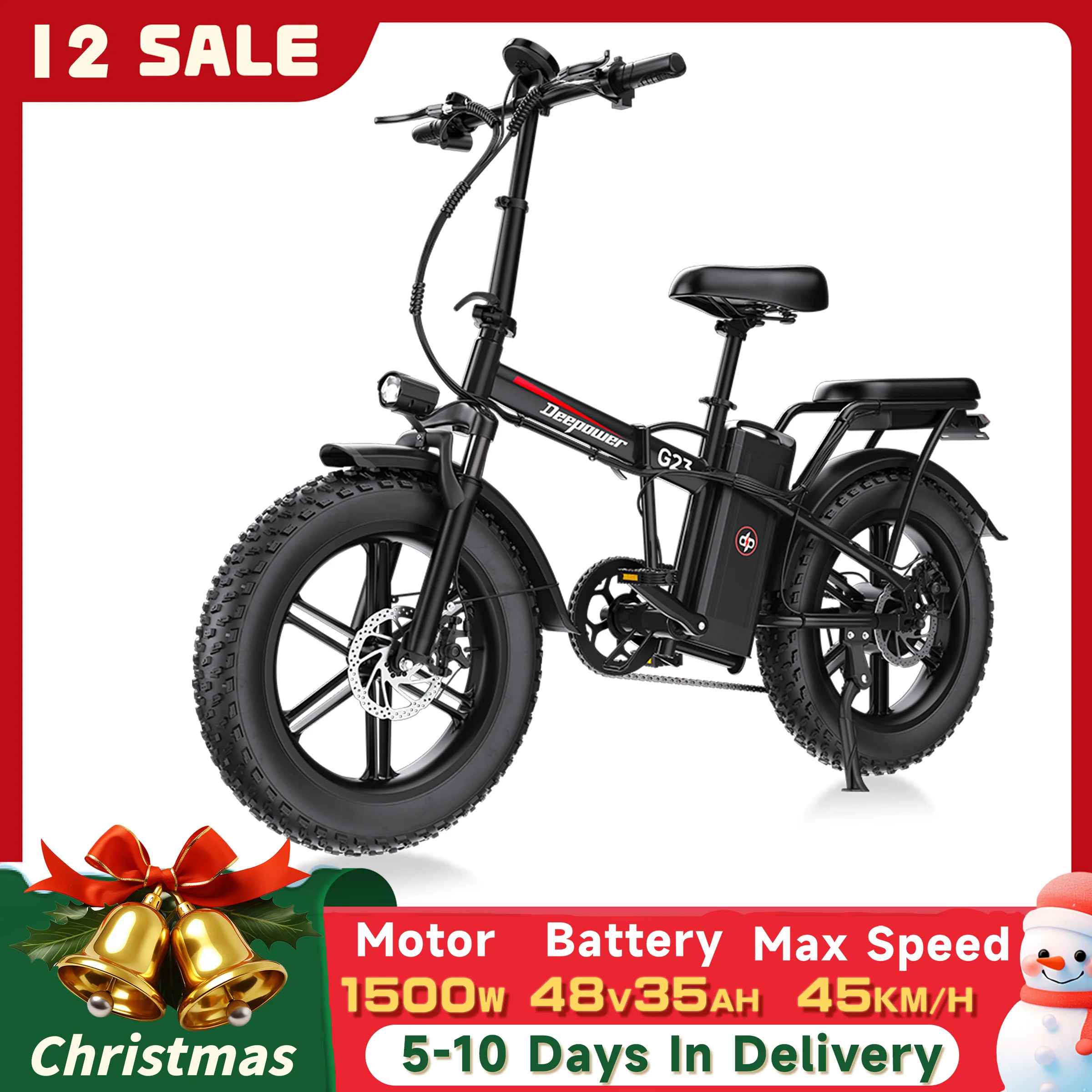 DEEPOWER G23 1500W Motor Electric Bicycle 48V 35AH Battery Ebike Folding Mountain Electric Bike Outdoor 7-speed Adult Bicycle