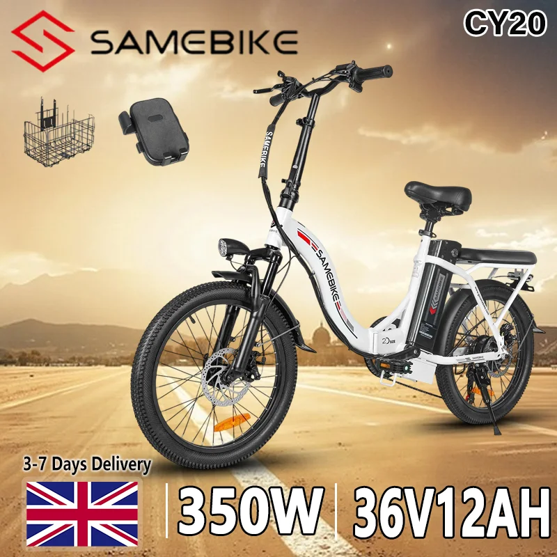 SAMEBIKE CY20 Foldable Electric Bicycle 350W Motor 36V12AH Battery City Travel E-Bike Adult 20 Inch Tires 7 Speed Electric Bike