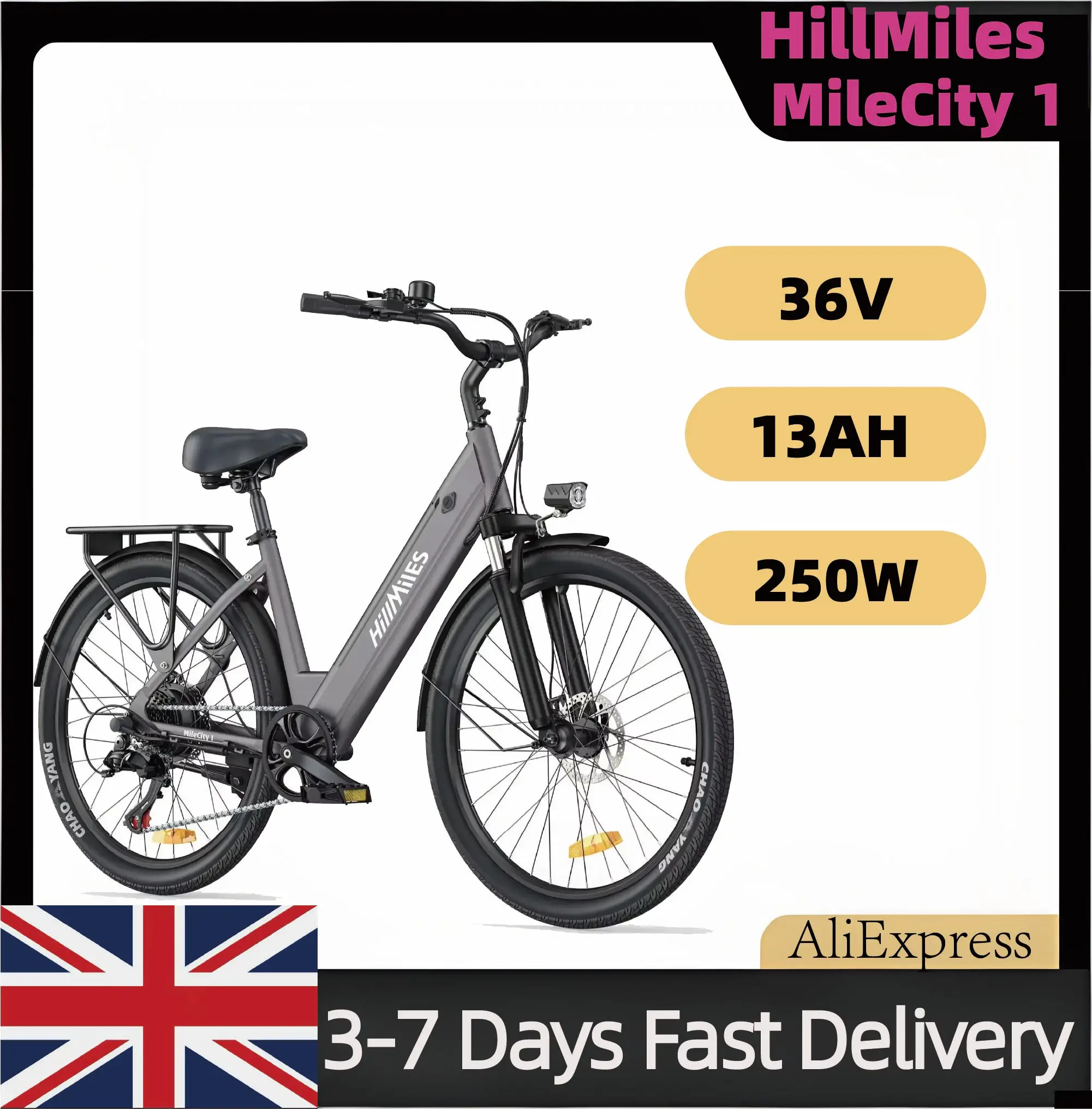 HillMiles MileCity 1 Adult E-bike, 250W road electric bicycle, 36V 13Ah battery, 26-inch tire city ebike,Electric Bike