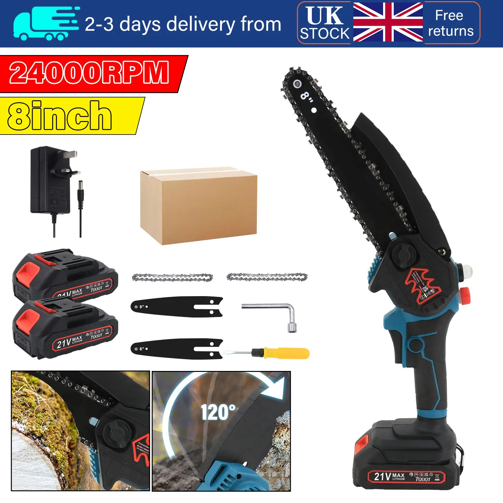 8'' 4000W Mini Cordless Electric Chainsaw One-Hand Saw Cutter Saw with 2 Batteries