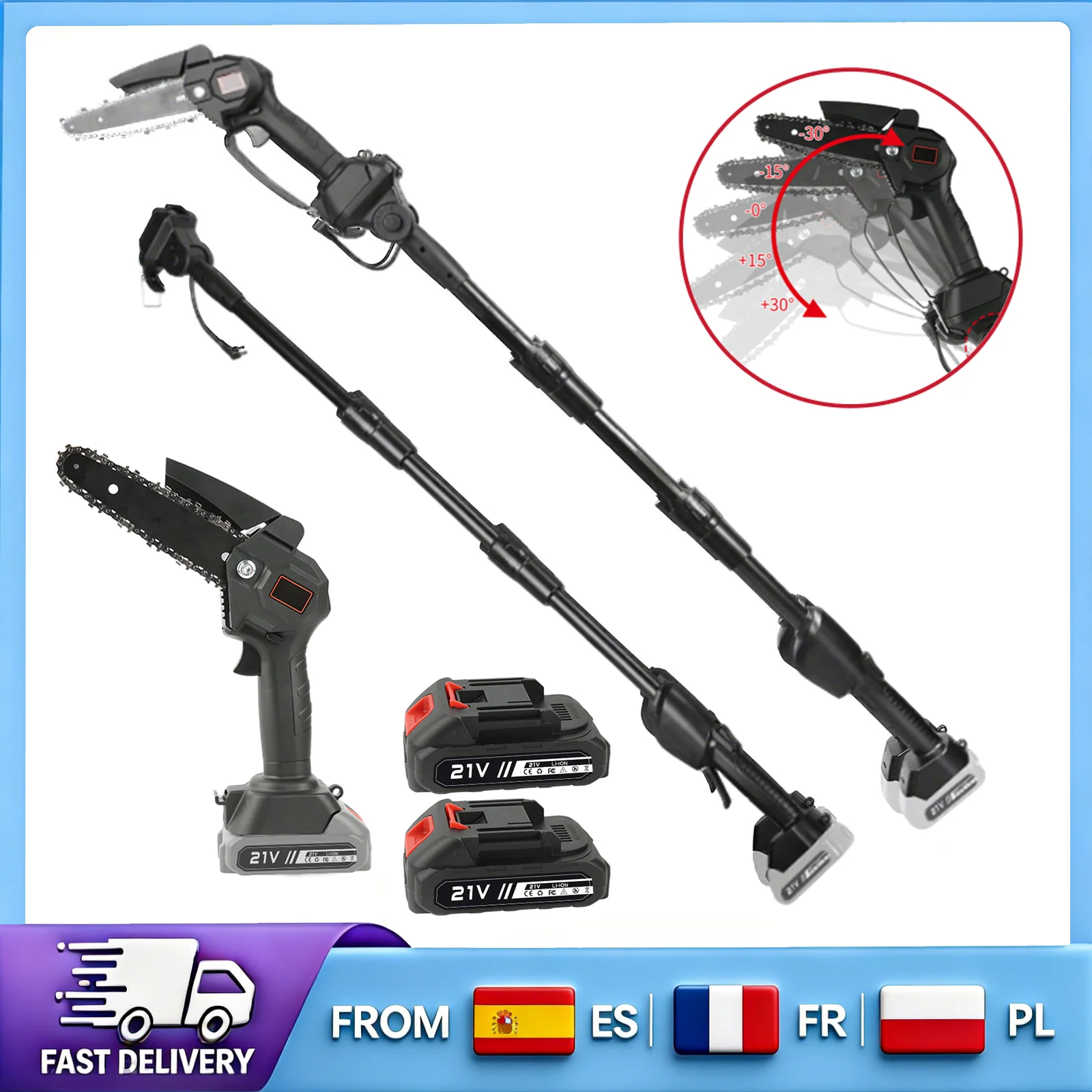 21V Electric Pole Chainsaw 7.4ft Extendable Tree Trimmer 2-in-1 Design Dual Safety Lock Tool-Free Assembly for Branch Cutting