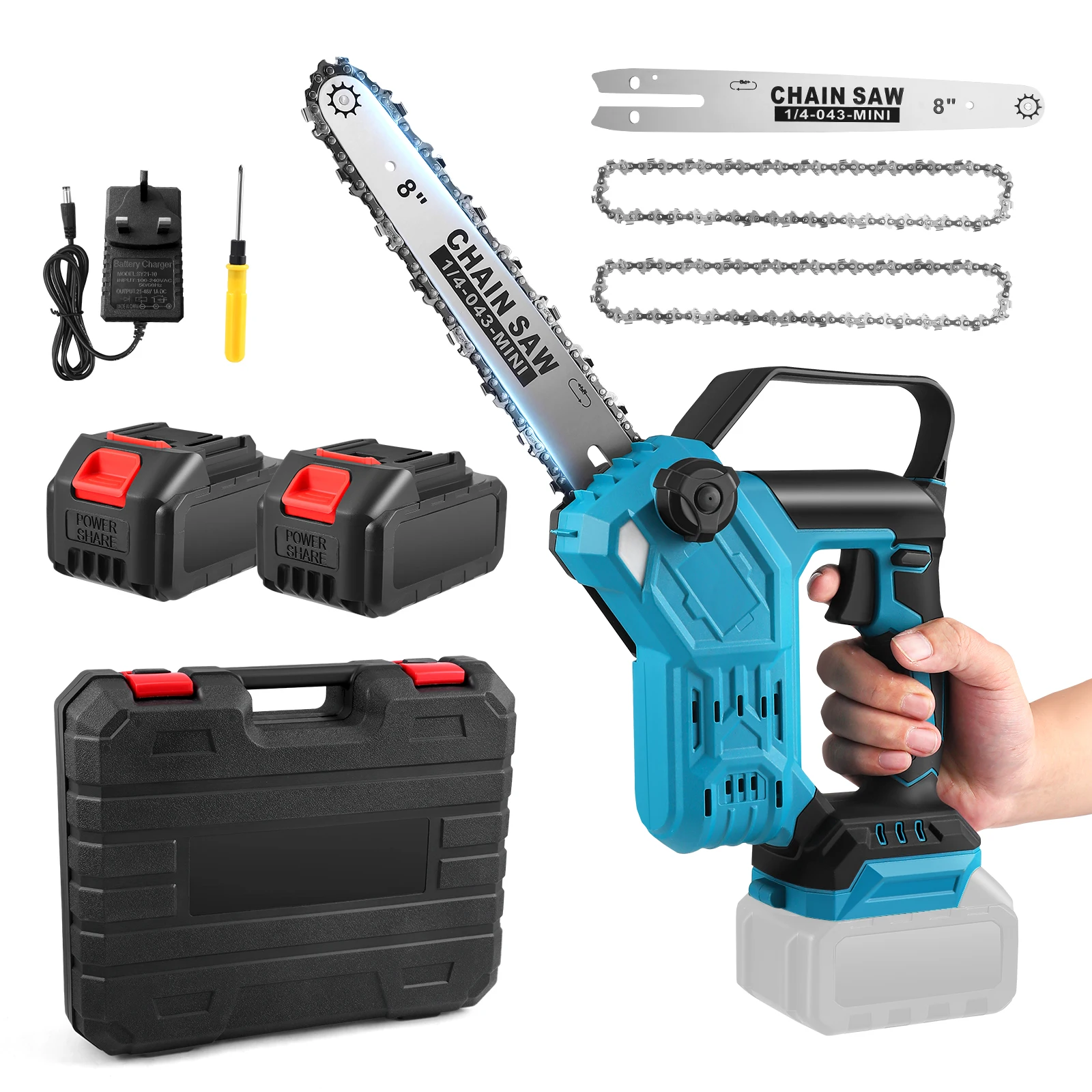 8-Inch Mini Chainsaw, Cordless Electric Chainsaw with Automatic Oiler Portable Handheld Wood Cutting Tool for Garden Shears
