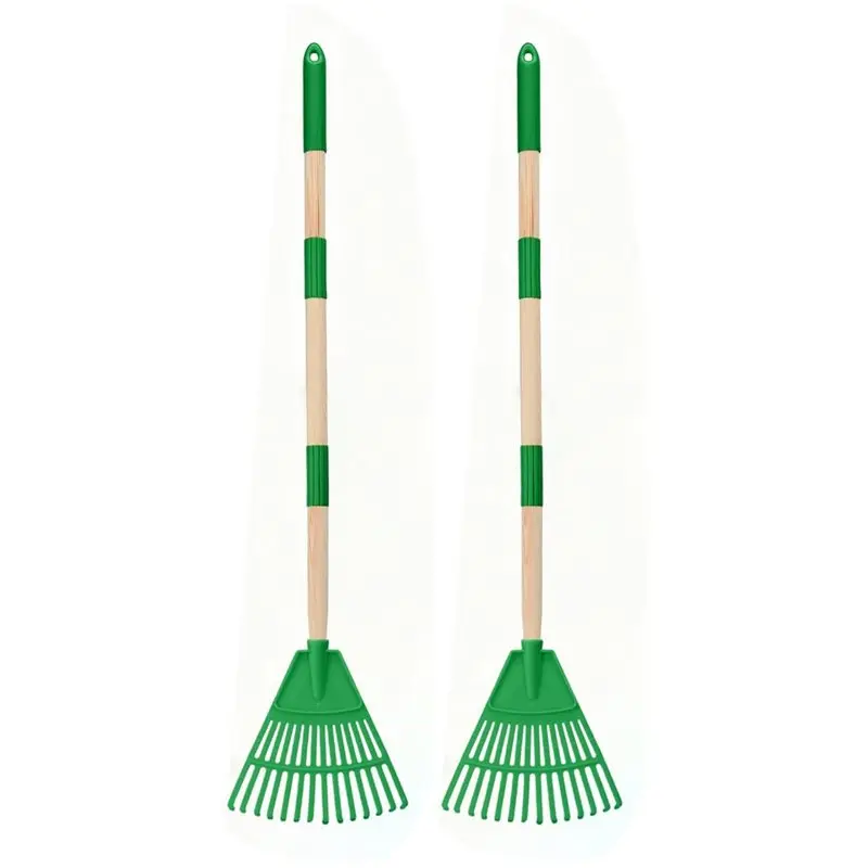 AB47-Safe To Use 2 Pcs Kids Rakes With Wood Handle-34" Light Plastic Garden Rake For Leaves, Kid Yard Tools