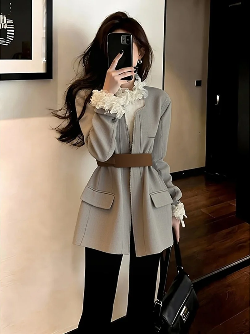 Ele Lace Collar Suit Set Women's Loose Two-Piece Outerwear Casual Sle Spring 2026 High-End Faion Inner Match