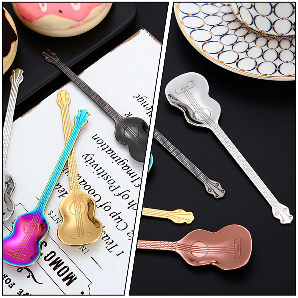 5Pcs Guitar Shape Spoon Metal Spoon High Temperature Resistant Corrosion Proof for Sugar Coffee Milk Cake Delicate