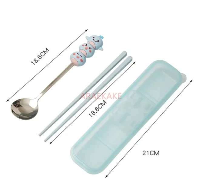 Children's Chopsticks and Spoons Set 304 Stainless Steel Portable Tableware Storage Box
