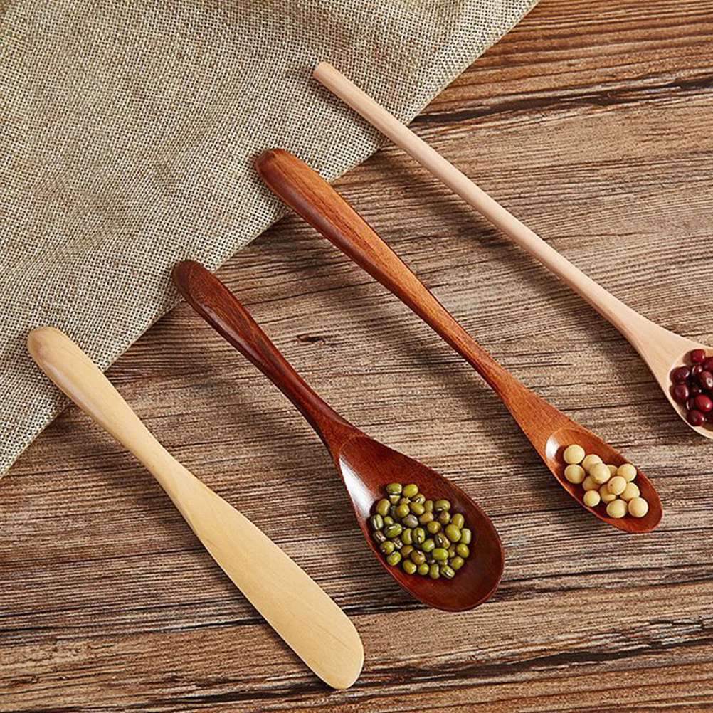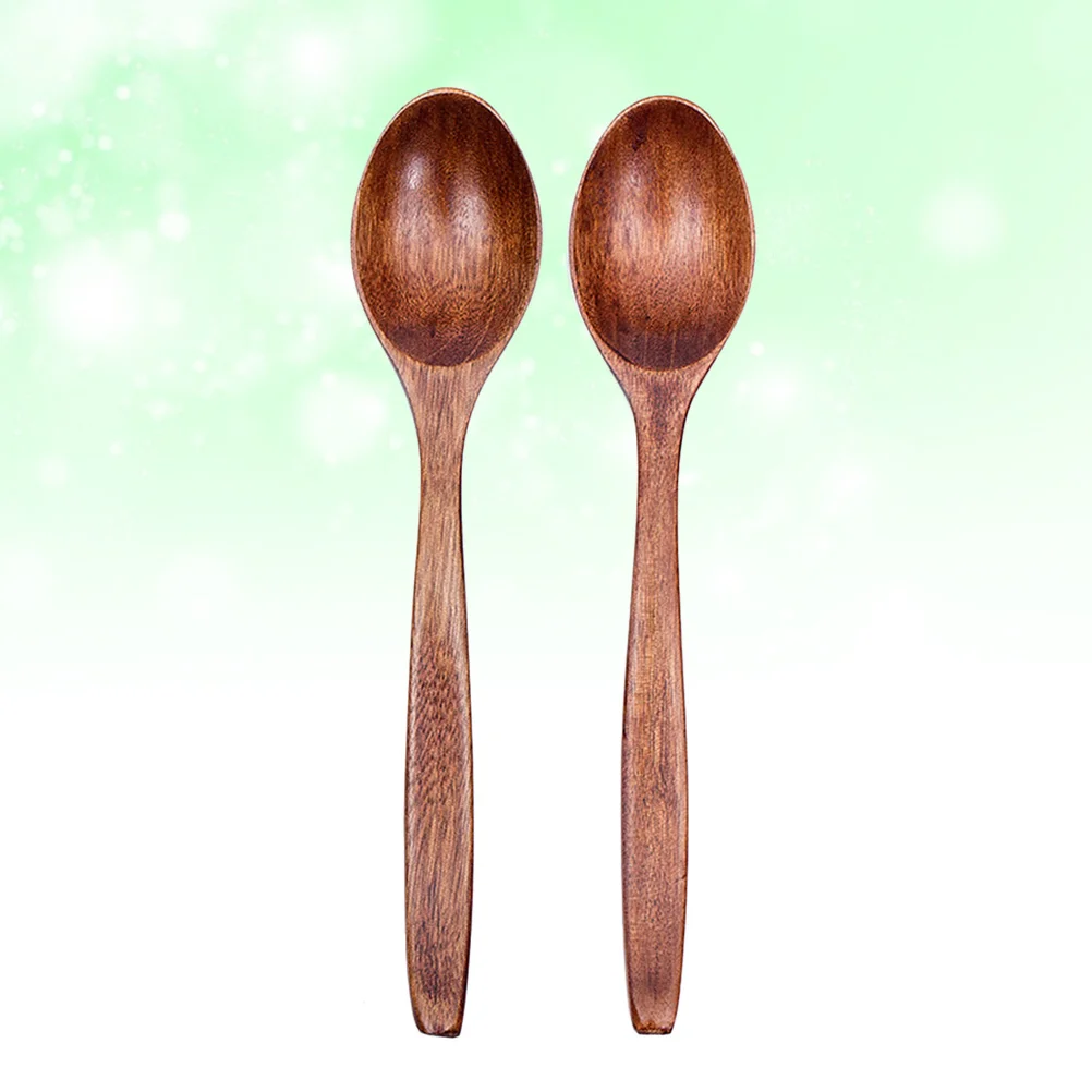 2pcs Natural For Kitchen Spoons Soup Eating Wood Mixing Spoon Spoon Mixing Stirring Cooking Kitchen Tools Wood Spoons