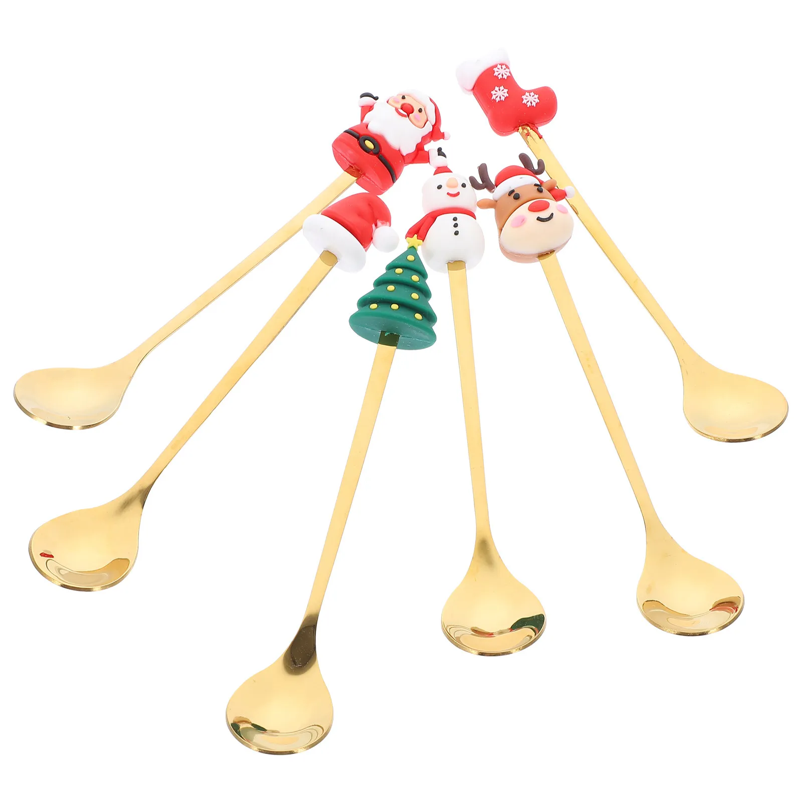 6Pcs Christmas Coffee Spoons Stainless Steel Mixing Spoons Xmas Dessert Spoon Kit Gift Set Coffee Spoon Christmas Gift Kit