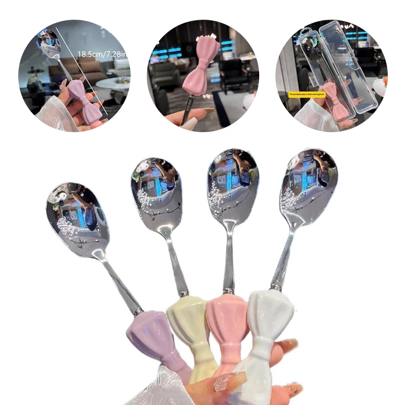 Portable Tableware Set Bow-shaped Stainless Steel Fork Spoon Chopsticks Cutlery Travel Flatware With Box