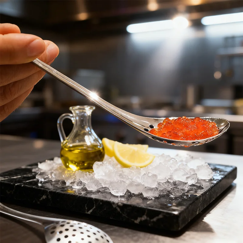 2026 NEW Professional Caviar Spoon 56 Holes, Egg Yolk Separator & Colander Tool, Non-Stick Kitchen Gadget for Precision Cooking
