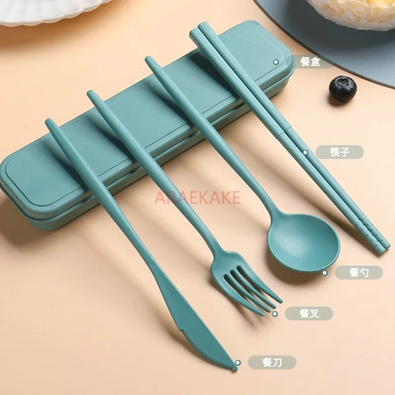 Chopsticks and spoons set, portable tableware, knives, forks, spoons, chopsticks, student tableware storage box
