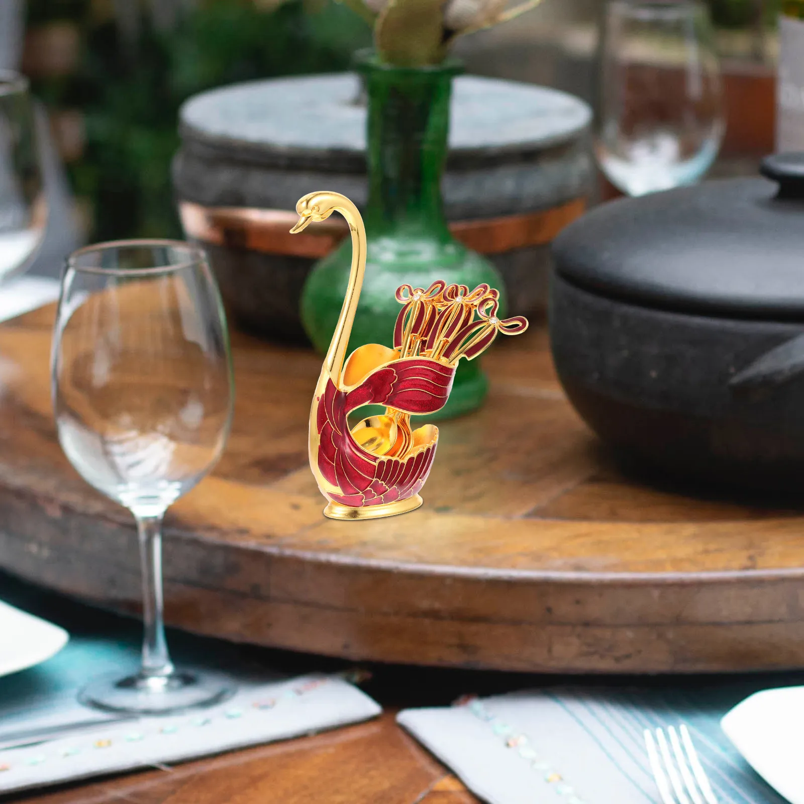 1Set Metal Swan Dessert Spoon Set with Spoon Holder Coffee Scoop Storage Rack for Restaurant Kitchen Use Cookie Scoop Set