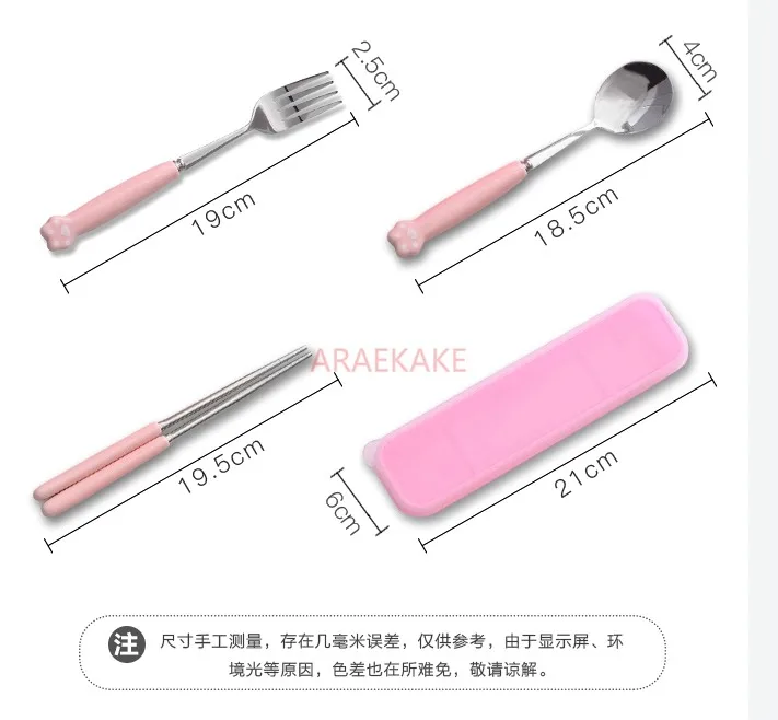 cute stainless steel travel portable set box Cartoon cutlery fork spoon chopsticks children's